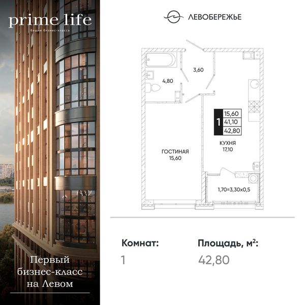 Купить однокомнатную квартиру в ЖК «Левобережье» в Ростове‑на‑Дону