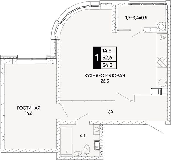 1-комнатная54,3 м²Ростовская область, Ростов-на-Дону, Левобережная улица