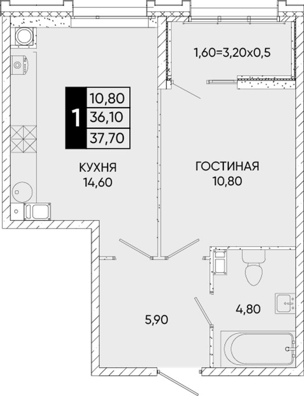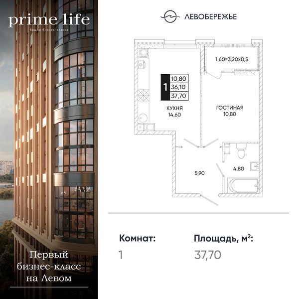 1-комнатная37,7 м²Ростовская область, Ростов-на-Дону, Левобережная улица, 6/1с2