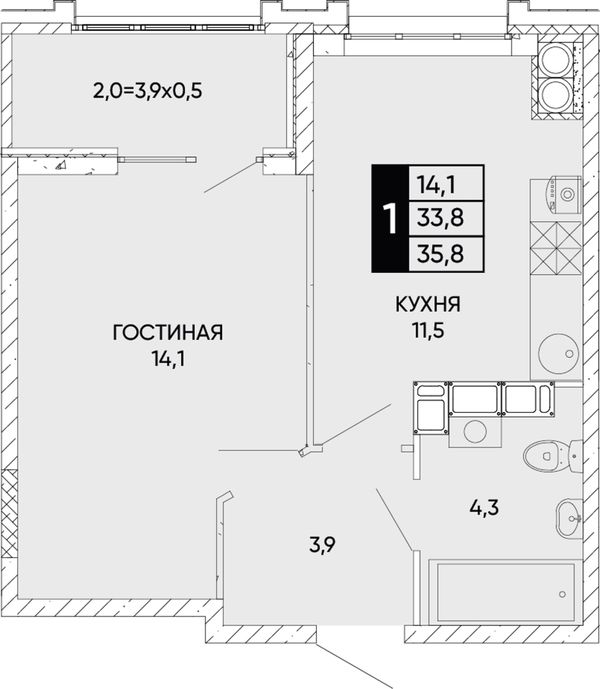 1-комнатная35,8 м²Ростовская область, Ростов-на-Дону, Левобережная улица
