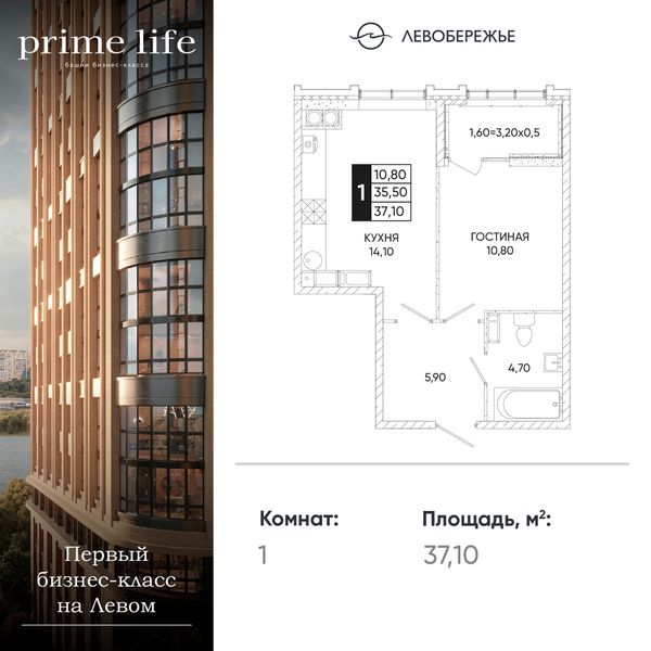 1-комнатная37,1 м²Ростовская область, Ростов-на-Дону, Левобережная улица, 6/1с2