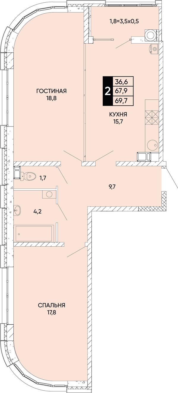 2-комнатная — 69,7 м²
