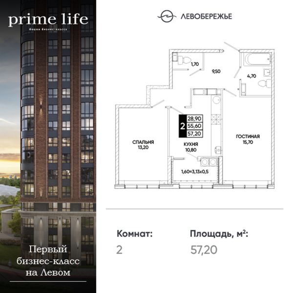 2-комнатная — 57,2 м²