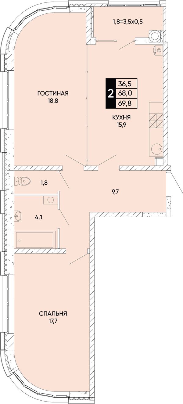 2-комнатная — 69,8 м²