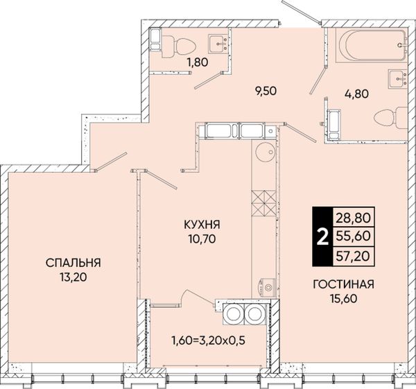 2-комнатная — 57,6 м²