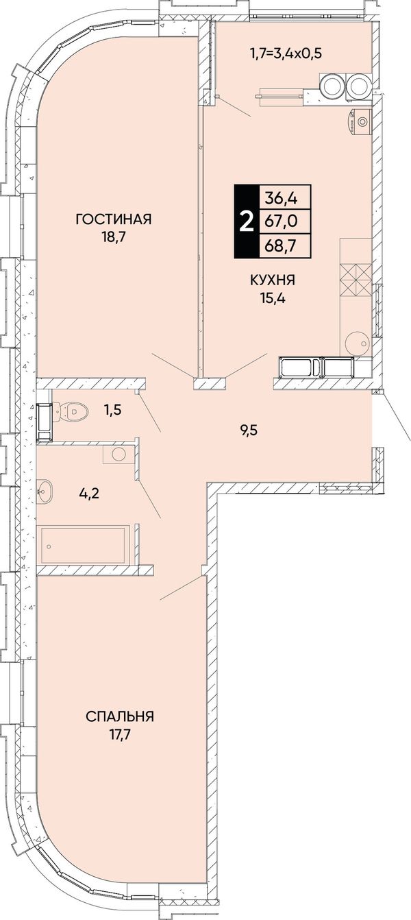 2-комнатная — 68,7 м²