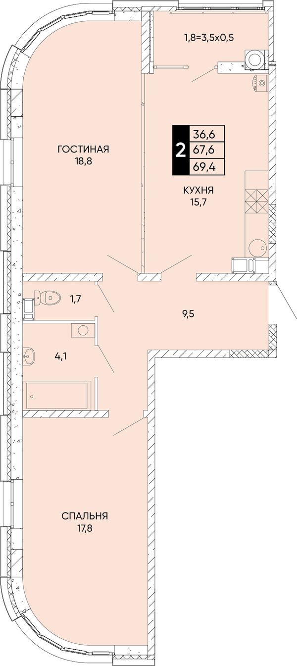 2-комнатная — 69,4 м²