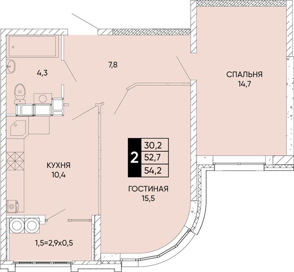 2-комнатная — 54,2 м²