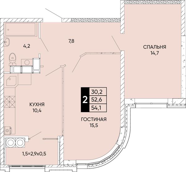 2-комнатная — 54,1 м²