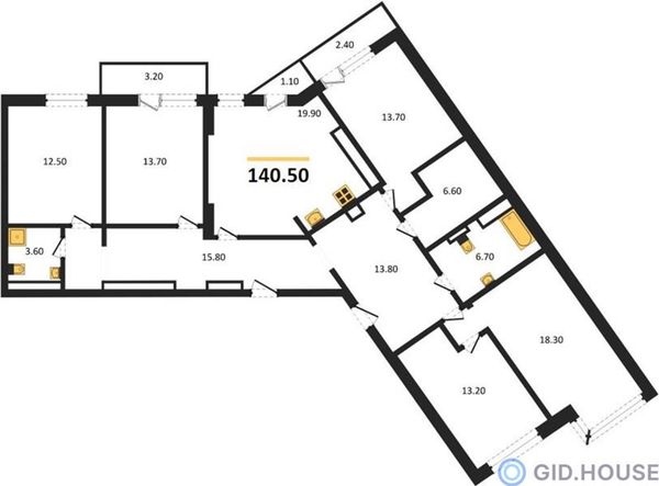 4+ комнатная — 140,5 м²