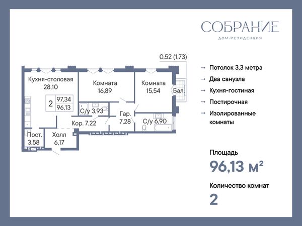 2-комнатная — 96,13 м²
