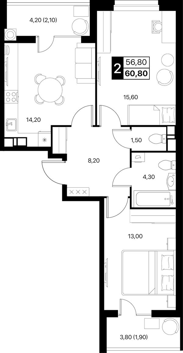 Купить двухкомнатную квартиру в ЖК «Квартал впечатлений Эстет» в Ростове‑на‑Дону