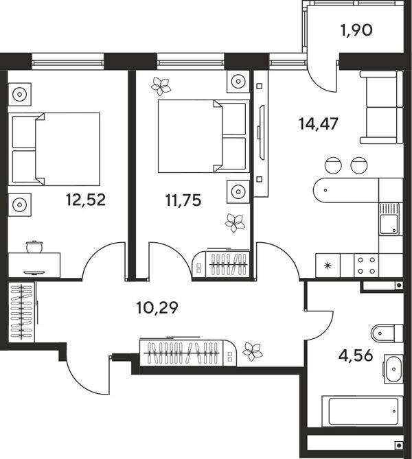 3-комнатная — 57,75 м²