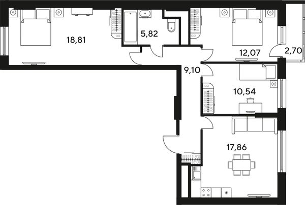 3-комнатная — 81,58 м²