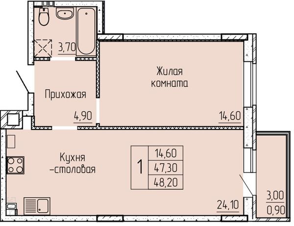 1-комнатная — 48,4 м²