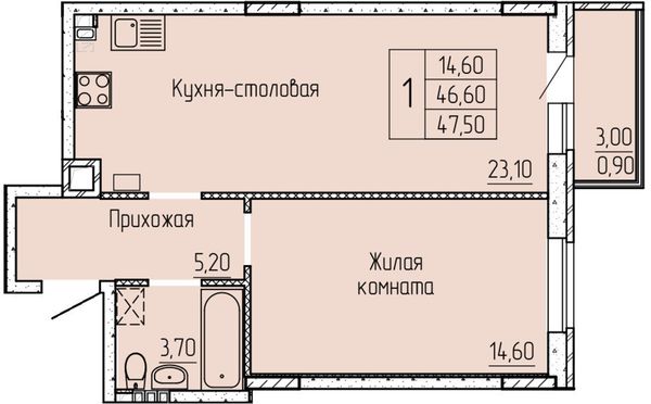 1-комнатная — 46,8 м²