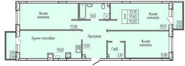 3-комнатная — 91,8 м²