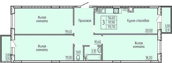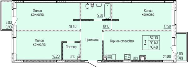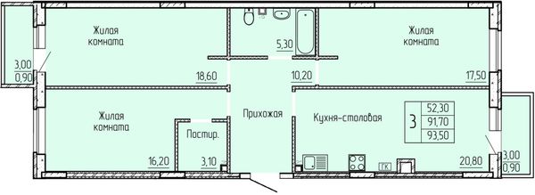 3-комнатная — 91,7 м²