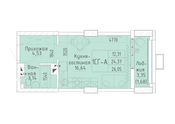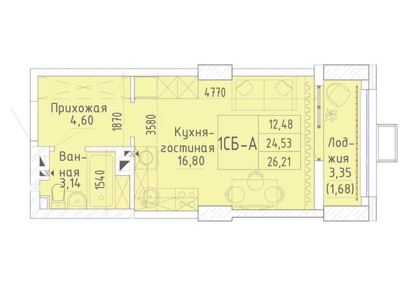 Студия26,14 м²Ростовская область, Ростов-на-Дону, Советский, проспект Стачки, 231/2