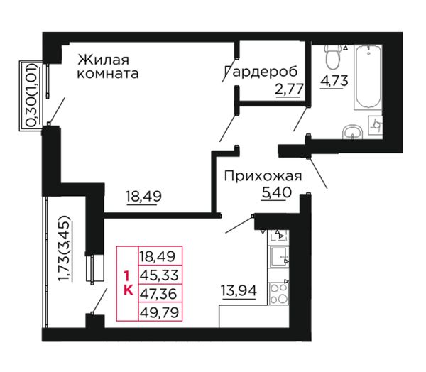 1-комнатная — 47,3 м²