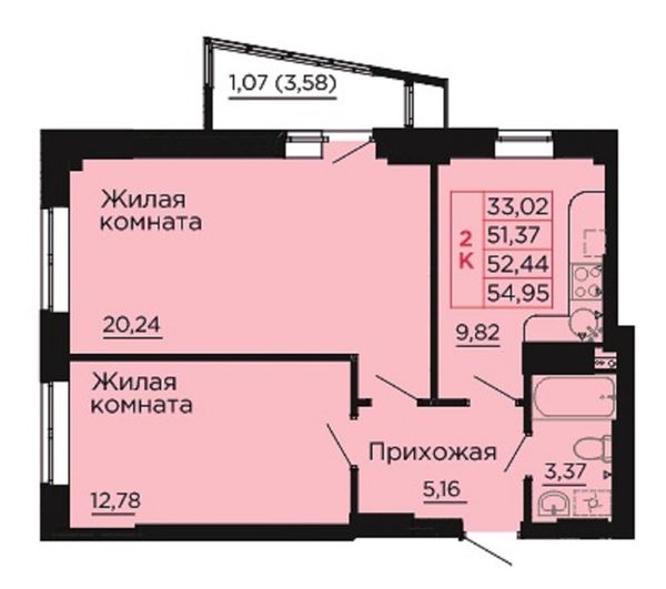 2-комнатная — 52,44 м²