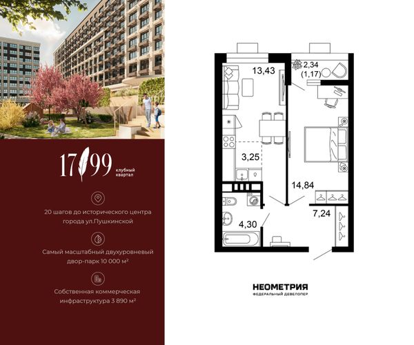 Купить двухкомнатную квартиру в ЖК «Жилой квартал 1799» в Ростове‑на‑Дону
