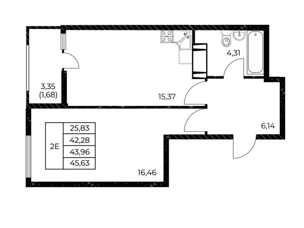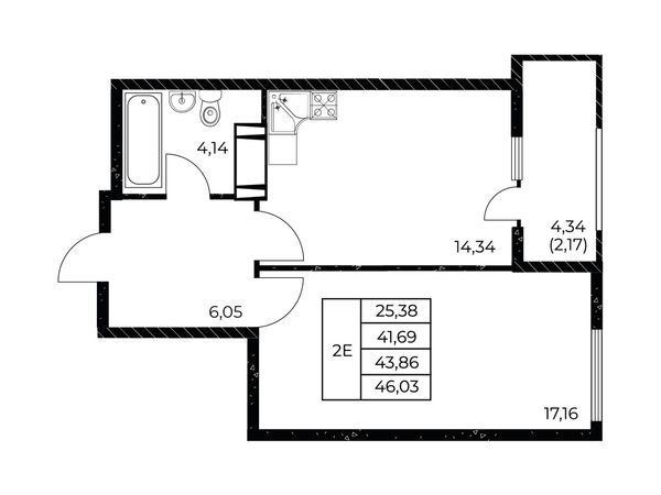 1-комнатная — 46,03 м²