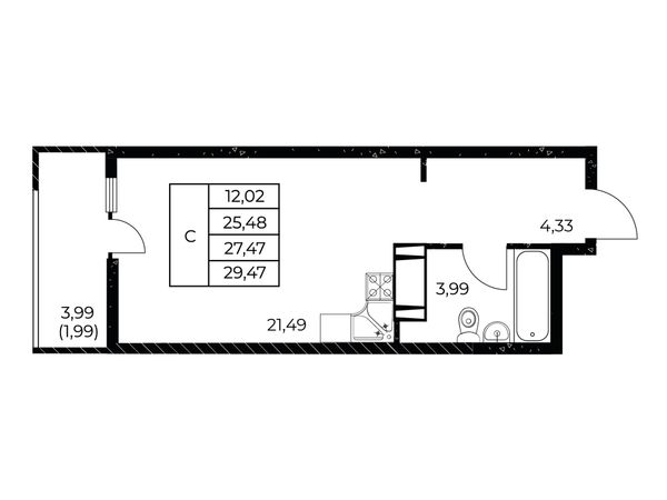 Студия — 29,47 м²