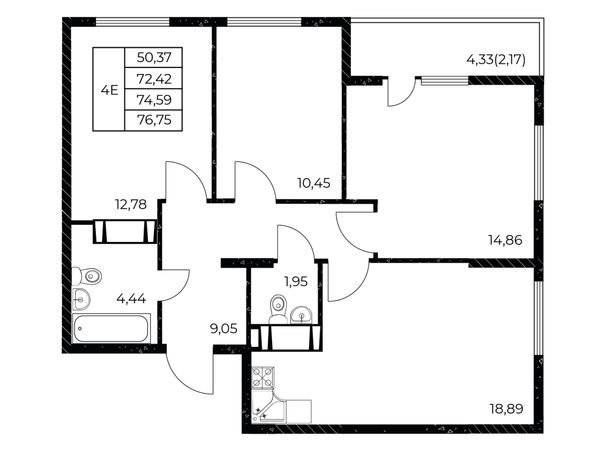 3-комнатная — 76,75 м²