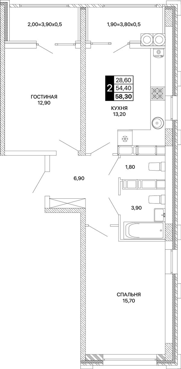 2-комнатная — 58,3 м²