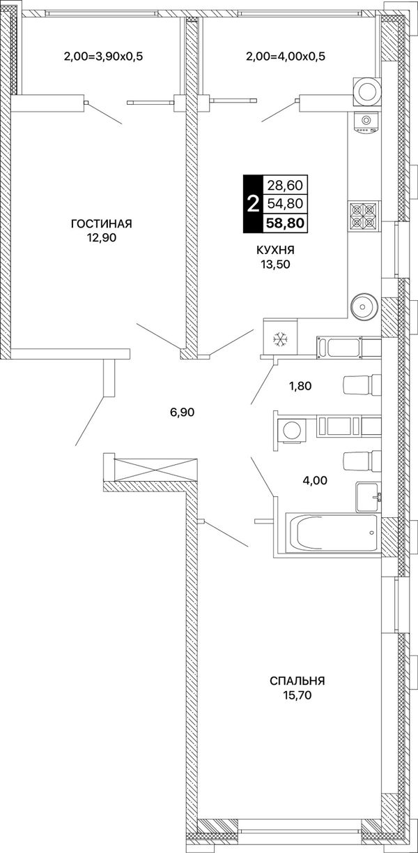 2-комнатная — 58,8 м²