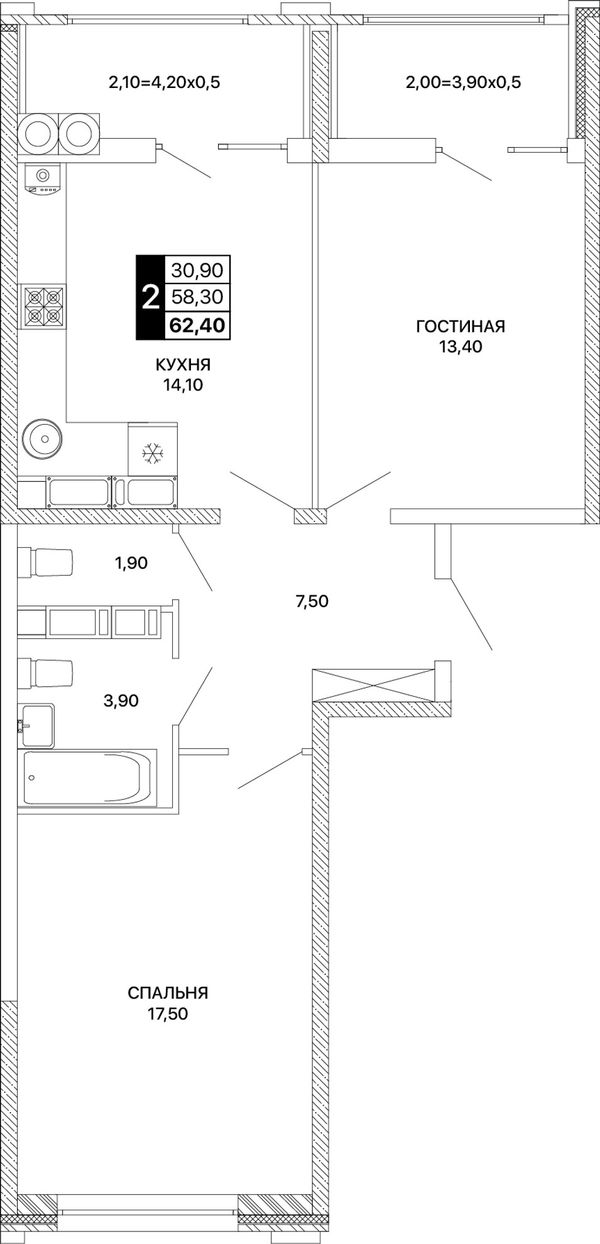 2-комнатная — 62,4 м²