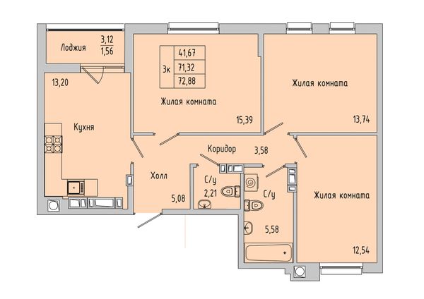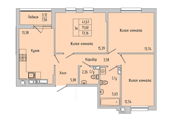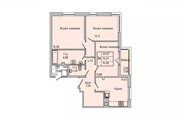 Купить трёхкомнатную квартиру в ЖК «Пальмира 2.0» в Батайске в Ростовской области