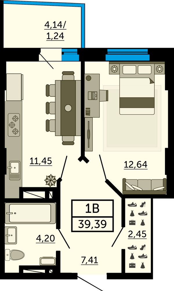 1-комнатная39,7 м²Ростовская область, Ростов-на-Дону, Пролетарский, улица 23-я Линия, 54с12