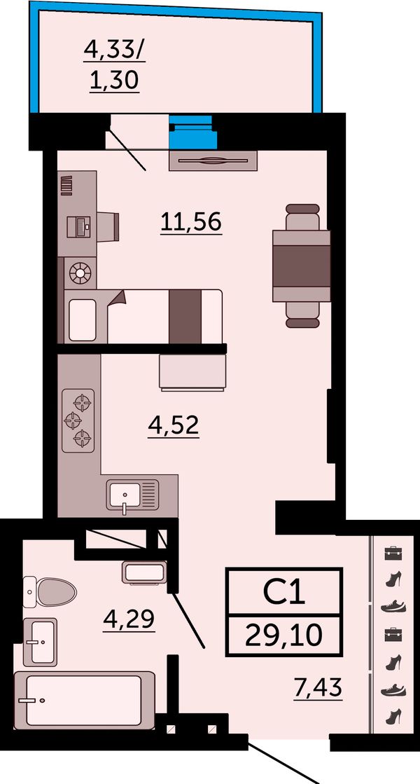 Студия29,9 м²Ростовская область, Ростов-на-Дону, Пролетарский, улица 23-я Линия, 54с12