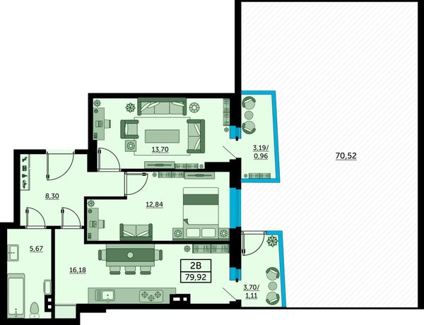 2-комнатная79,9 м²Ростовская область, Ростов-на-Дону, Ворошиловский, улица Ларина, 45с2