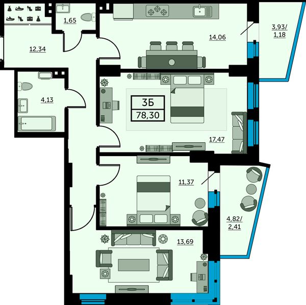 3-комнатная — 77,8 м²