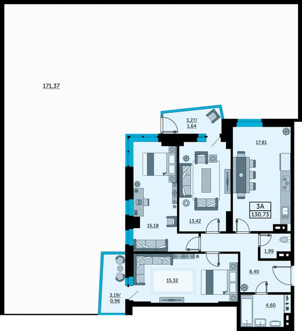 3-комнатная — 131,7 м²