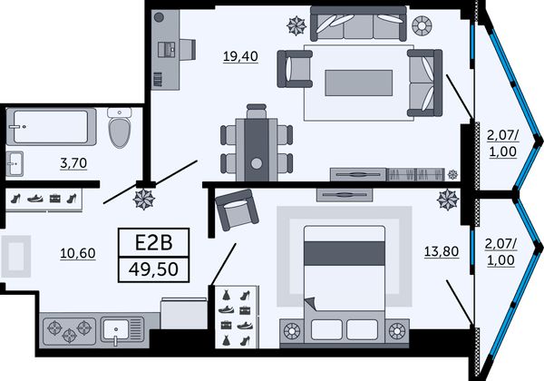 1-комнатная49,5 м²Ростовская область, Ростов-на-Дону, Ворошиловский, проспект Космонавтов, 1В