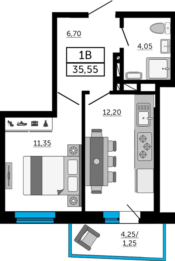1-комнатная35,55 м²Ростовская область, Ростов-на-Дону, Кировский, Кировский проспект, 89с1
