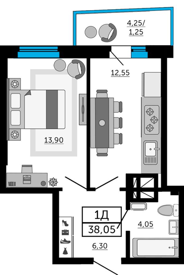 1-комнатная38,75 м²Ростовская область, Ростов-на-Дону, Кировский, Кировский проспект, 89с1