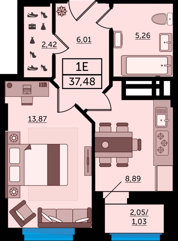 1-комнатная37,58 м²Ростовская область, Ростов-на-Дону, Ворошиловский, проспект Михаила Нагибина, 40