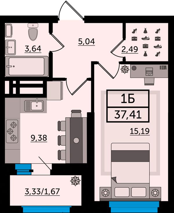 1-комнатная37,67 м²Ростовская область, Ростов-на-Дону, Ворошиловский, проспект Михаила Нагибина, 40