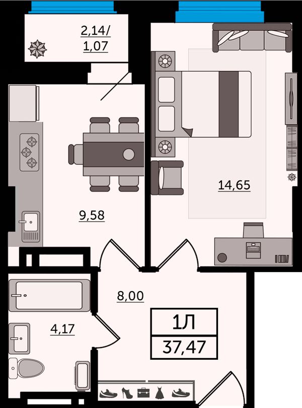 1-комнатная37,47 м²Ростовская область, Ростов-на-Дону, Ворошиловский, проспект Михаила Нагибина, 40