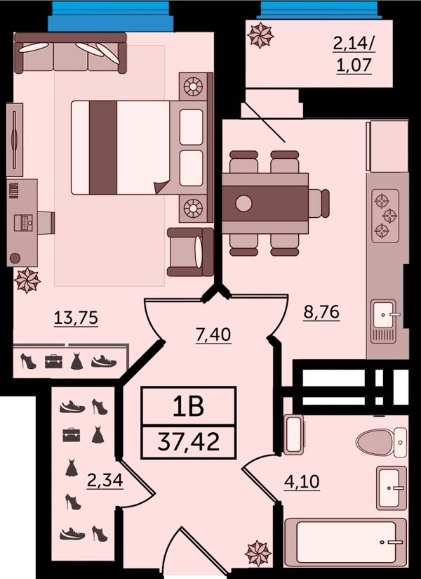 1-комнатная37,42 м²Ростовская область, Ростов-на-Дону, Ворошиловский, проспект Михаила Нагибина, 40