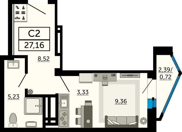 Студия — 27,16 м²