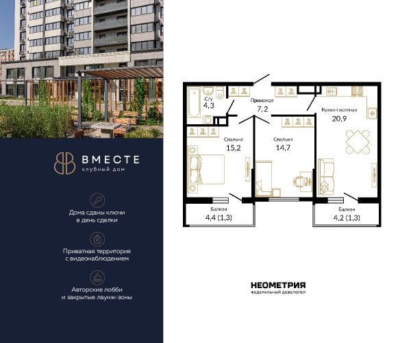 Купить двухкомнатную квартиру в ЖК «Вместе» в Ростове‑на‑Дону