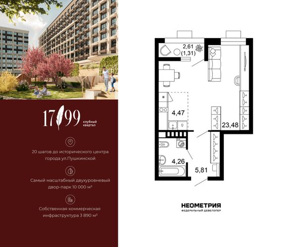 Купить однокомнатную квартиру в ЖК «Жилой квартал 1799» в Ростове‑на‑Дону