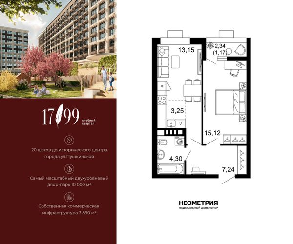 Купить двухкомнатную квартиру в ЖК «Жилой квартал 1799» в Ростове‑на‑Дону