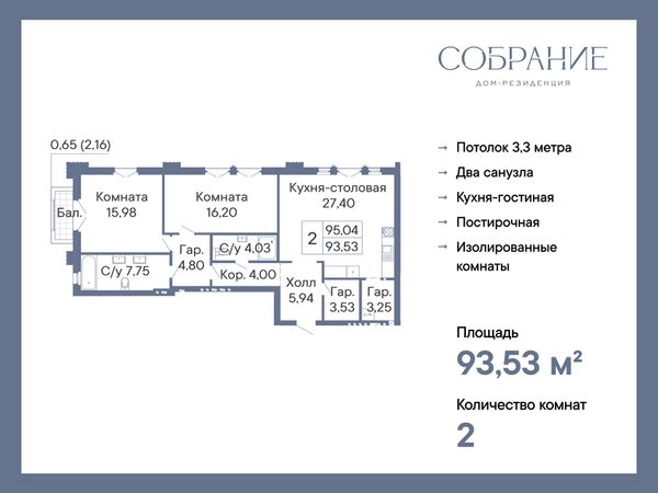 2-комнатная — 93,53 м²
